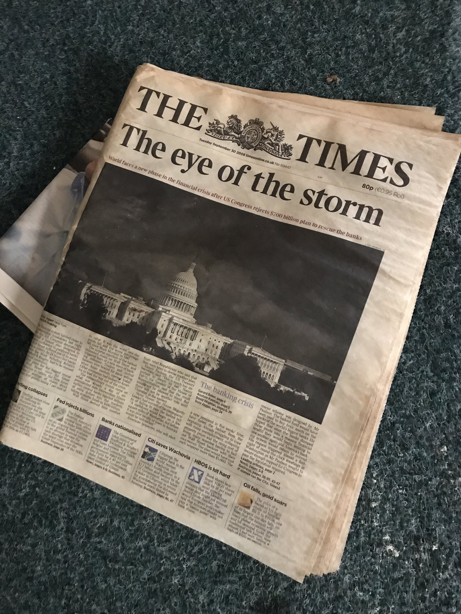 An edition of The Times newspaper found in Carnegie Oldpark’s reading room, dated Tuesday 30 September 2008.